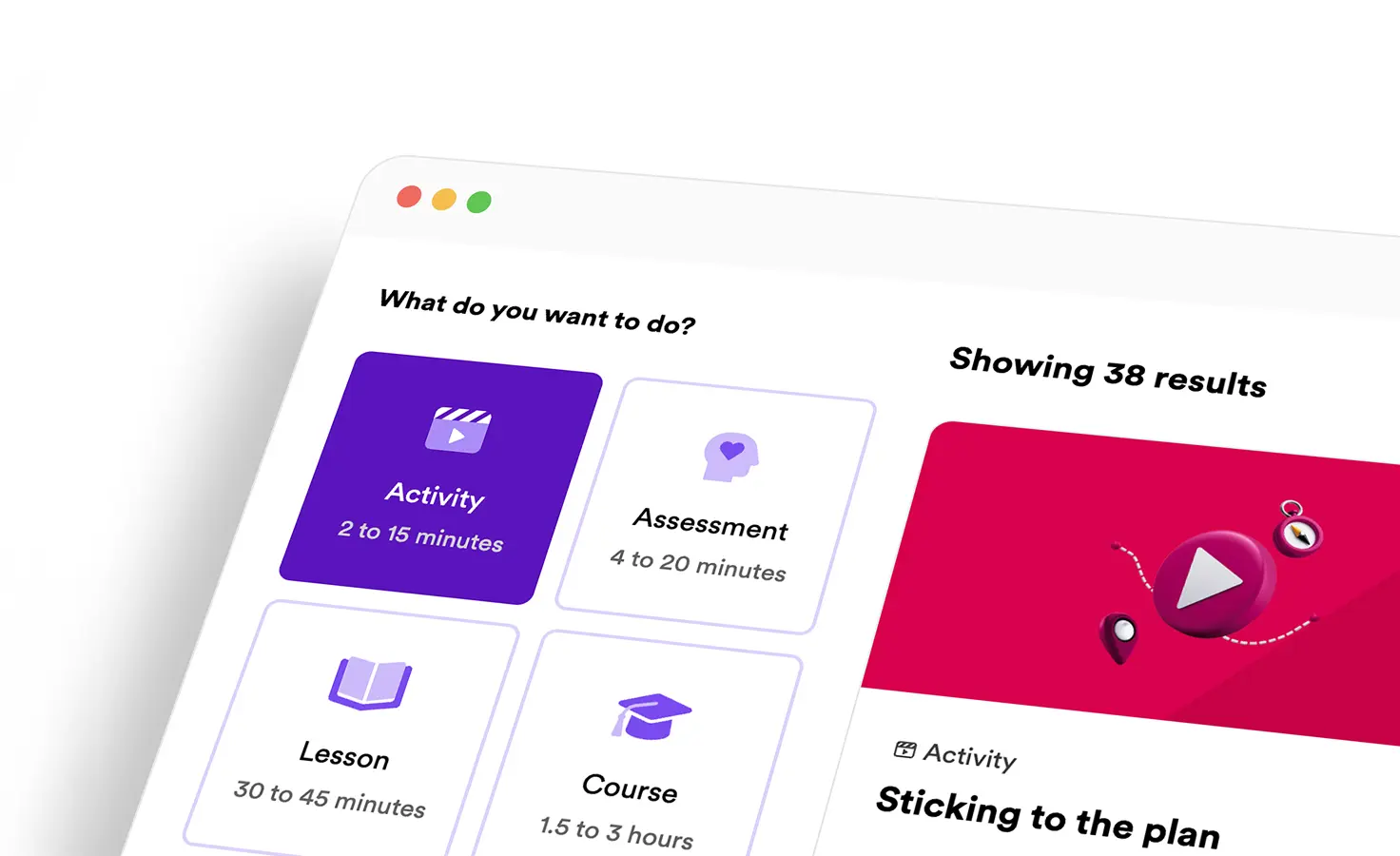 Our library offers four different types of training. Each includes a variety of activities, like videos, exercises, dilemmas, and more.